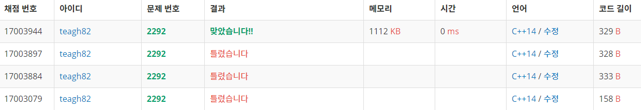 입력으로 주어진 방까지 최소 개수의 방을 지나서 갈 때 몇 개의 방을 지나는지 출력한다.