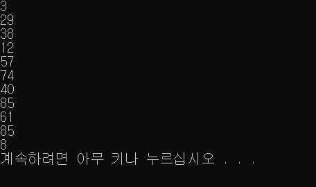 이 주어지면, 이들 중 최댓값은 85이고, 이 값은 8번째 수이다.