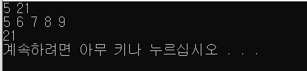 문제 카지노에서 제일 인기 있는 게임 블랙잭의 규칙은 상당히 쉽다. 카드의 합이 21을 넘지 않는 한도 내에서, 카드의 합을 최대한 크게 만드는 게임이다. 블랙잭은 카지노마다 다양한 규정이 있다. 한국 최고의 블랙잭 고수 김정인은 새로운 블랙잭 규칙을 만들어 상근, 창영이와 게임하려고 한다. 김정인 버젼의 블랙잭에서 각 카드에는 양의 정수가 쓰여 있다. 그 다음, 딜러는 N장의 카드를 모두 숫자가 보이도록 바닥에 놓는다. 그런 후에 딜러는 숫자 M을 크게