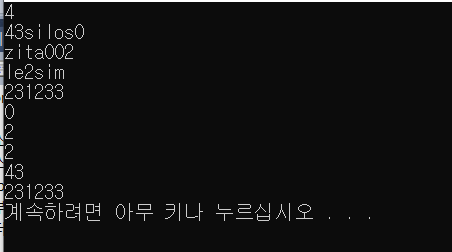 다음 N개의 줄에는 각 줄의 내용이 주어진다. 각 줄은 최대 100글자이고, 항상 알파벳 소문자와 숫자로만 이루어져 있다.