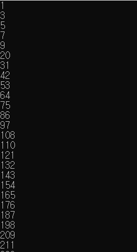 생성자가 없는 숫자를 셀프 넘버라고 한다. 100보다 작은 셀프 넘버는 총 13개가 있다. 1, 3, 5, 7, 9, 20, 31, 42, 53, 64, 75, 86, 97
