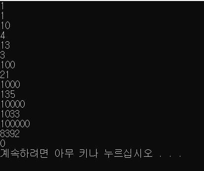 입력의 마지막에는 0이 주어진다.