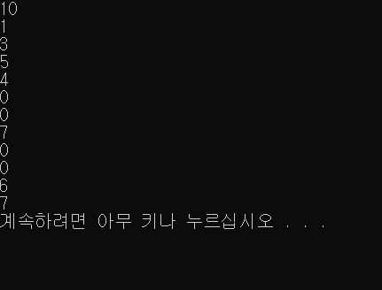 이후 K개의 줄에 정수가 1개씩 주어진다. 정수는 0에서 1,000,000 사이의 값을 가지며, 정수가 "0" 일 경우에는 가장 최근에 쓴 수를 지우고, 아닐 경우 해당 수를 쓴다.