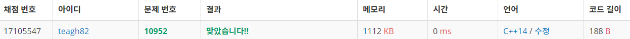 두 정수 A와 B를 입력받은 다음, A+B를 출력하는 프로그램을 작성하시오.