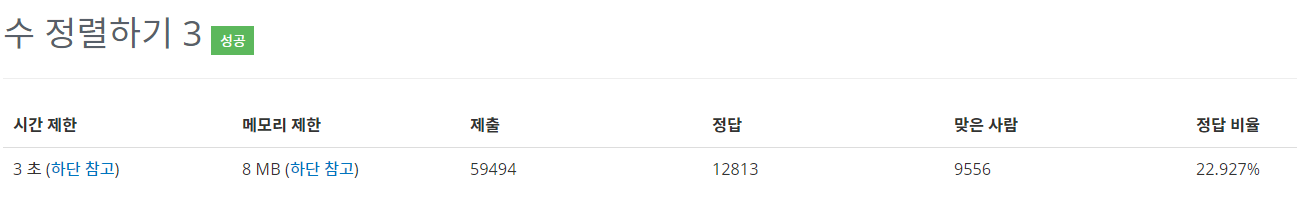 10989번: 수 정렬하기 3