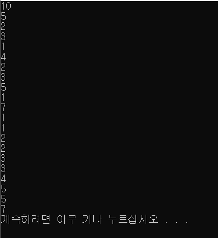 첫째 줄부터 N개의 줄에 오름차순으로 정렬한 결과를 한 줄에 하나씩 출력한다.