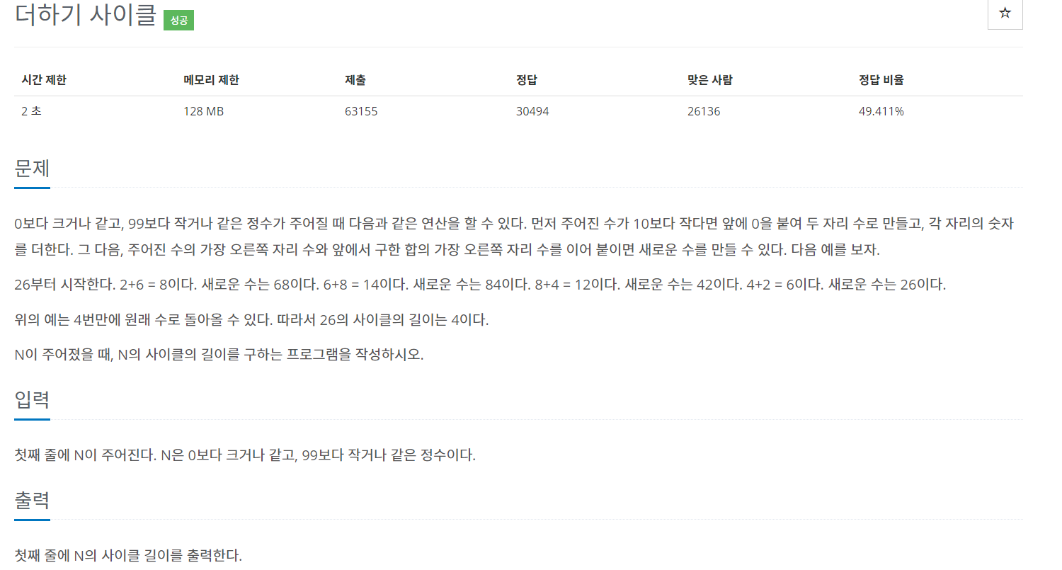 N이 주어졌을 때, N의 사이클의 길이를 구하는 프로그램을 작성하시오.