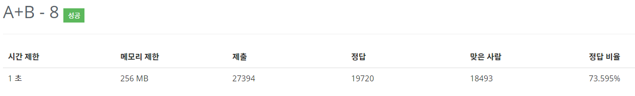 두 정수 A와 B를 입력받은 다음, A+B를 출력하는 프로그램을 작성하시오.